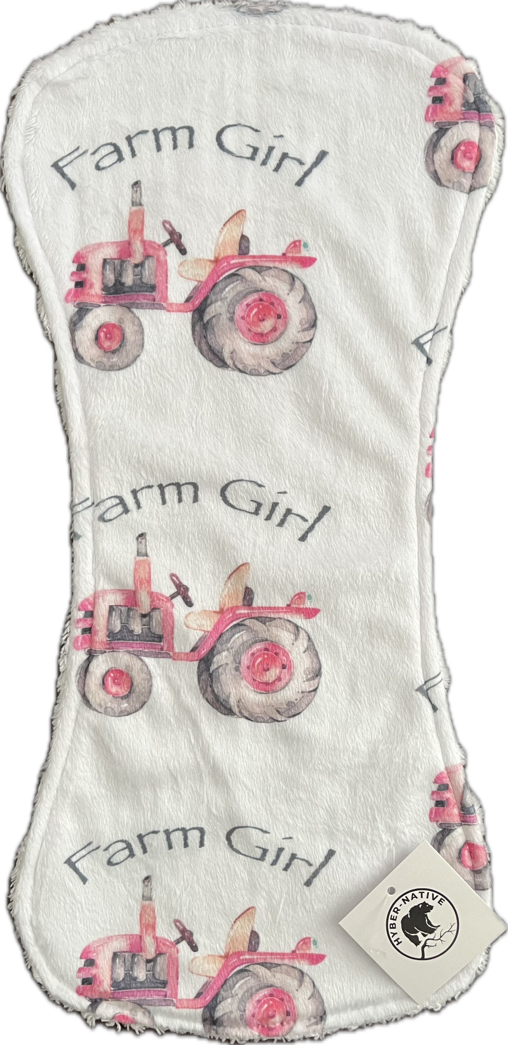 Our soft and absorbent burp cloths - measuring approximately 8" x 17" - are made from high quality materials, including beautifully designed, minky front sides and cotton chenille on the reverse. We take the same care in crafting our burp cloths as we do our luxury blankets.