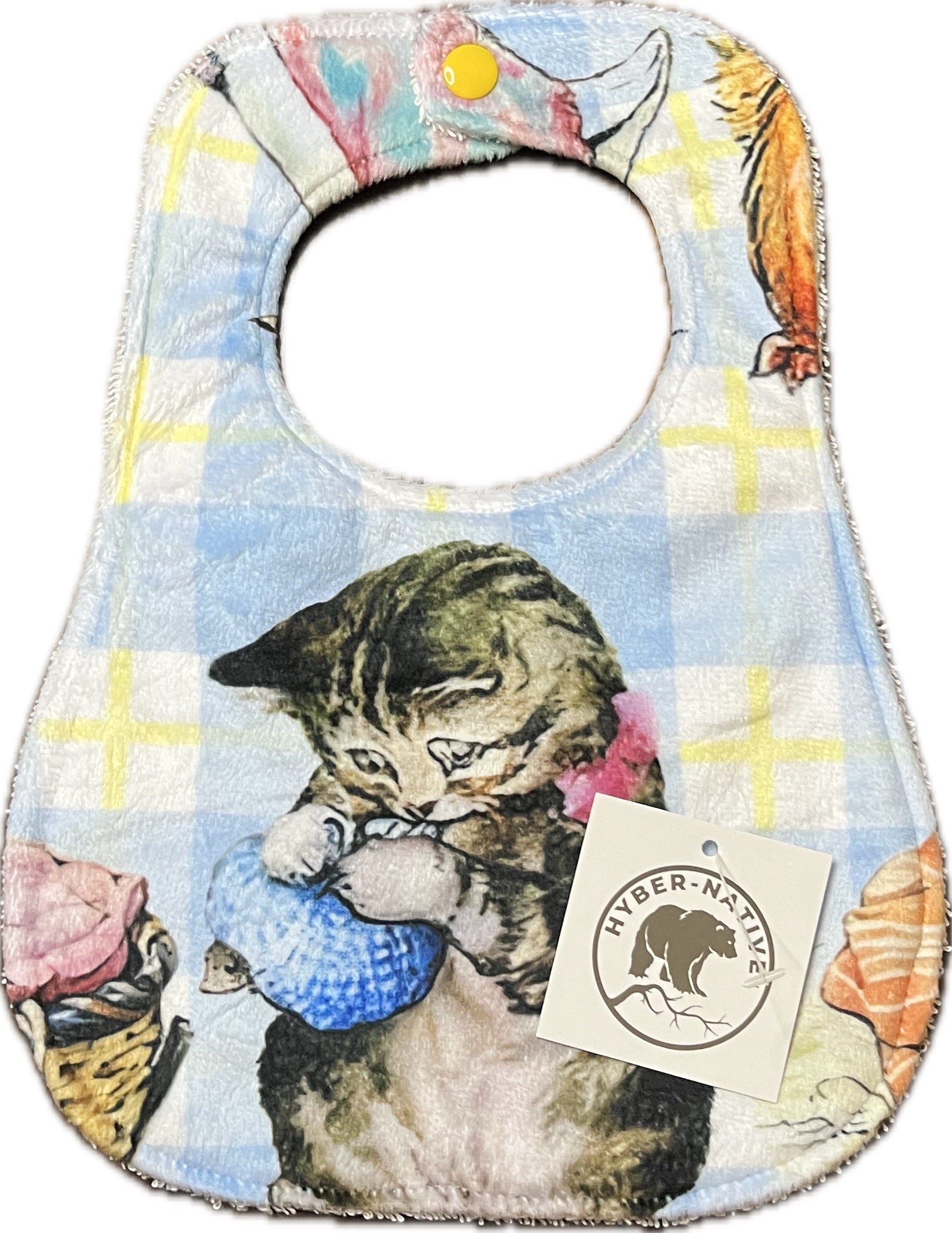 Our bibs are made from high-quality minky prints and cotton chenille, making them soft, comfortable and absorbent. Like all of our minky products, they are machine-washable and retain their original color and form over time.