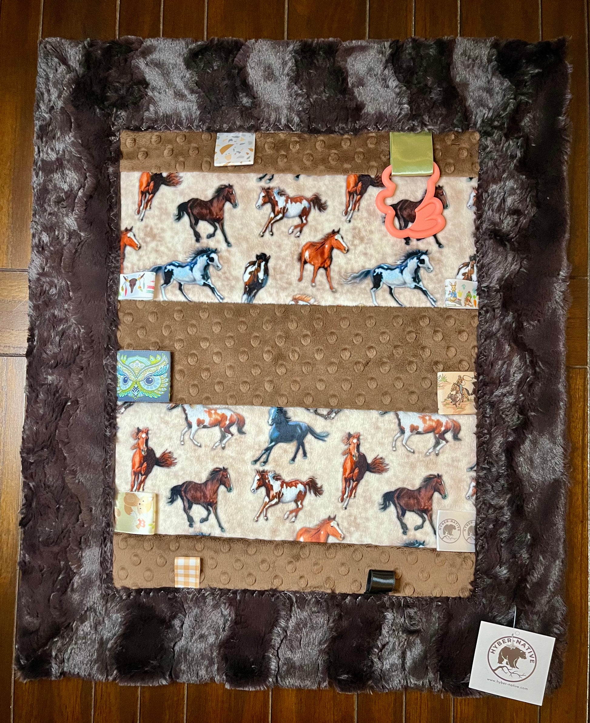 Warm and snuggly textures and tags, our CubTags are just like their larger counterparts but just the right size for on-the-go. Measuring approximately 20" wide by 24" long and made of high-quality minky and cuddle fur, they're a "go anywhere" solution for parents and infants. And don't forget the attached link toy for easy carrying.